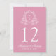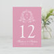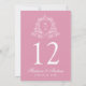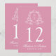 Elegant Blommigt Vapensköld Rosa Bröllop Bordsnumm Inbjudningar