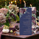 De moderna blommigtarna visas mot bakgrund av flottan i elegantens blommigt, ro guld och menyn för marintemat bröllop. All text som kan redigeras med mallen kan anpassas ytterligare om du vill ändra teckensnitt eller färg. Kolla in EmmyINK:s affär för att få mer samordning av modern blommigt och marinen bröllop decor!