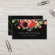 Stilblommor, fjädrar och lövverk för elegant vattenfärg skuggar bohemiska i chic av lilor, burgundy, rosor, persika och grönt med guld- geometriska brytningar på baksida, visitkortar. Bakgrundsfärg som visas i svart, kan skräddarsy.