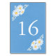 Elegant Blommigt Vita Daisy på Blå Bröllop Bordsnummer