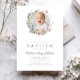 Elegant Blommigt Wildblommor Photo Baptism-inbjudan. För bästa resultat överför du en fyrkantig bild av baby.