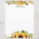 Elegant personlig stillastående papper med vattenfärgade solrosarrangemang.
