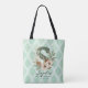 Elegant blommonogram – Mintgrön botanisk konst Tygkasse