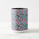 Elegant Blommönster Rosa Lila på Black Background Mugg