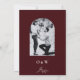 Fira din kärlekshistoria med denna Eleganta Blommiga Burgunder Elfenbensfärgade Formella Bröllopsfotoinbjudan, en design som perfekt fångar essensen av ett lyxigt klassiskt bröllop. Denna mall har en vacker fotolayout ramad av dramatiska, stämningsfulla akvarell burgunderfärgade florala peonior och rosor. Den rika burgunder- och rosafärgade paletten, accentuerad av djup grönska, skapar en överdådig look som är idealisk för ett höstbröllop, medan den krispiga elfenbensvita bakgrunden och den moderna kalligrafin bibehåller en traditionell och klassisk känsla.