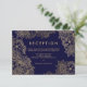 Elegant blomster- guld marinblå mottagning bröllop inbjudningar