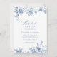 Elegant blomster vintage marinblå bröllopsfest inbjudningar