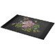 Elegant blomsterbroderingsmönster på svart bakgrund - Ett vackert broderimönster med vintagekänsla med en vacker vildros i rosa nyanser, grön lövverk och en närliggande fjäril.