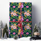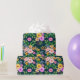 Detta eleganta inslagspapper har en livlig bukett av färgglada blommor mot en djup, rik bakgrund. Den blomsterrika designen inkluderar en mängd olika blommor och frodig grönska, perfekt för att lägga till en feminin och sofistikerad touch på dina presenter. Idealiskt för födelsedagar, brud shower, bröllop och speciella tillfällen, detta blomsterinslagspapper ger en fräsch och girlly estetik till alla presenter.