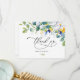Elegant blomsterbukett gul vit blå bröllop tack kort