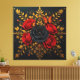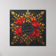 Svarta och röda rosor, kungliga gyllene blad och livfulla fjärilar