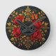 Svarta och röda rosor, kungliga gyllene blad och livfulla fjärilar
