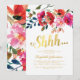 Eleganta överraskningsfestinbjudningar med klassisk vit bakgrund, akvarellblomsterdisplay, en stilren falsk guldpräglingstitel och en modern festmall.