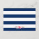 Elegant blomstergestaltad marinblå randig bröllopsmottagningskort.