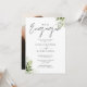 Denna eleganta bröllopsinbjudan med grönska kan anpassas med din information i chic typografi och med ditt foto på baksidan. Designad av Thisisnotme©