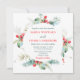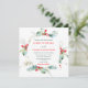 Denna vackra och eleganta bröllopsinbjudan har akvarellblommor, lövverk och bär. Texten kombinerar handskriven skrift och serif-teckensnitt för en stilren och modern look. Detta är perfekt för ett jul- eller vinterbröllop.