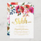 Eleganta överraskningsfestinbjudningar med klassisk vit bakgrund, akvarellblomsterdisplay, en stilren falsk guldpräglingstypografisk titel och en modern festmall.