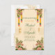 Bjud in dina gäster till en vacker fest med denna Eleganta indiska blomsterkrans Mandap bröllopsinbjudan. Denna design är rik på kulturella detaljer, med frodiga rosa rosor och peonior som ramar in kanterna, kompletterade med traditionella gula och rosa Marigold-girlander (torans) som hänger och ömtåliga lyktor (dias).