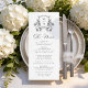 Färdigställ din bröllopsmottagningspapeter med denna eleganta svarta blomkransmonogrammenykort, designad för att samordna sömlöst med din brölloppssvit. Den övre delen av designen visar en förfinad svart blomkrans som omger parets initialer och bröllopsdatum, vilket skapar en tidlös fokuspunkt. Ett elegant kalligrafiskt typsnitt visar frasen ”The Menu”, med dina menyval listade nedan i klassiska seriffer på en vit bakgrund. Perfekt för formella bröllop, herrgårdsarrangemang och traditionella bröllopsreceptioner, ger denna meny en polerad och sammanhängande touch till din dukning.