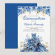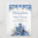 Fira med dessa eleganta blå och guldfärgade blommiga klänningsinspirerade Quinceañera födelsedagsinbjudningar. Anpassa med din egen text och detaljer.