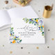 En strålande färgrik bröllopsgästbok med vacker akvarellgrön botanisk växtlighet och eucalyptusblad och soliga eleganta gula vita blommor. Fånga de uppriktiga minnena från din speciella dag med denna eleganta blomstergula, vita och blå bröllopsgästbok. Med en sofistikerad design prydd av ömtåliga gula blommor, mjuka vita blommor och charmiga blå accenter, utstrålar denna gästbok tidlös romantik och elegans. Den förfinade typografin och luftiga akvarelldetaljerna skapar en fräsch och inbjudande estetik, perfekt för vår- och sommarbröllop. Idealisk för trädgårds-, strand- eller landsbygdsfirande, denna vackert designade gästbok ger en skattad souvenir där nära