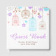 Elegant blomsterliknande lila och blå bröllopsdusc gästböcker