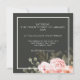 Tidlös romantisk rosa ros-kluster med korallfärgade accenter på en dramatisk kolmörk bakgrund - superstiligt! Denna vackra bröllopsdesign visar upp moderna blom- och botaniska element med frisk, modern glans.