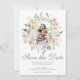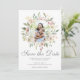 En elegant cirkelram med akvarellmålade blushrosa peonior och elfenbensvita rosor ramar in denna vackra sommarinbjudan i form av ett "Spara datum"-foto. De botaniska kvistarna med salviagröna eukalyptusblad pryds mitt i den laxrosa samlingen av blommor ovanför den vackra, kursiva skriften. Den rosa baksidan på kortet ger en romantisk touch. Dessa ömtåliga inbjudningskort är perfekta för en vacker utomhusceremoni med mottagning i trädgården. Lägg till ert eget förlovningsfotografi.