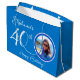 Elegant Blue 40th Birthday Photo Large Gift Bag Speciell, unik elegant Blue Photo 40th Birthday party presentsäckar som är särskilt designade för dina vänner som vänder sig 40! Anpassa den här födelsedagsfestens presentväska med namn och foto. Planera party med mer födelsedagsfest från vår butik! Dina vänner eller familj kommer att ge kärlek en elegant blåtemad födelsedagsfest!