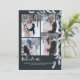 Elegant, minimalistiskt, modernt blått 4-fotokollage-vykort för Helgdag. Den här sjutna, minimala fyra (4) fotokortsmallen innehåller en fotokollage i söt romantik och ett vitt skript! Detta kort för helgdag är ett underbart val för par och älskare denna jul och Julhelg. Foto och text på det här kortet kan anpassas med dina foton och din text.