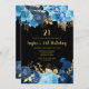 Elegant Blue and Gold Flowers Birthday Party Inbjudningar
