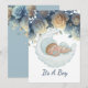 Elegant Blue & Gold Roses surround a peaceful sleeping baby in this charming invitation, perfect for welcoming your little prince. This design features a delicate watercolor illustration of a baby boy resting on a soft, fluffy cloud, framed by a lush arrangement of midnight blue and champagne gold roses.