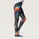Elegant Blue and Guld Peacock in Colorful Garden Leggings