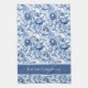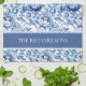 Elegant Blue and White Chinoiserie Floral Pattern kitchen towel features an elegant all-over botanical pattern inspired by classic chinoiserie artwork, blending detailed blossoms and foliage in soft blue and white tones. The intricate floral illustration creates a timeless, vintage-inspired aesthetic while maintaining a clean and refined look. A coordinating solid blue name band across the center adds structure and contrast, highlighting the personalized family name in crisp, classic typography. The balanced composition of floral pattern and custom name detail gives the design a sophisticated yet welcoming feel, making it ideal for adding a touch of traditional charm and personalized elegance to any space. The blue and white palette offers a fresh, serene atmosphere that pairs beautifully with both modern and classic décor styles.