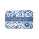 Elegant Blue and White Flowers Floral Pattern Bath Mat features an elegant all-over botanical pattern inspired by classic chinoiserie artwork, blending detailed blossoms and foliage in soft blue and white tones. The intricate floral illustration creates a timeless, vintage-inspired aesthetic while maintaining a clean and refined look. A coordinating solid blue name band across the center adds structure and contrast, highlighting the personalized family name in crisp, classic typography.