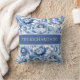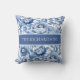 Elegant Blue and White Flowers Floral Pattern Throw Pillow features an elegant all-over botanical pattern inspired by classic chinoiserie artwork, blending detailed blossoms and foliage in soft blue and white tones. The intricate floral illustration creates a timeless, vintage-inspired aesthetic while maintaining a clean and refined look. A coordinating solid blue name band across the center adds structure and contrast, highlighting the personalized family name in crisp, classic typography.