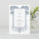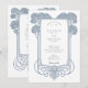 Meddela din bröllop med finare sofistikering med hjälp av den här eleganten Art Deco-inspirerad inbjudan. Designen har stiliserad träd och komplicerat rullningsarbete, som återges i en delikat blå nyans mot en ren vit bakgrund. Det stiliserade träd påminner om konsthändelsen. Den omvända sidan, för "Finer Details" (Finer-information), är en kompletterande layout med samma snyggt träd och rullverk inslag som ramar texten. Den här sviten framkallar en känsla av klassisk glamor och vintage charm. Det är idealiskt för par att söka en sofistikerad, snyggt och minnesvärt meddelande för deras bröllop, perfekt för ett formellt eller vintage temat firande.