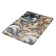 Elegant baroque-inspired swirl design in warm beige, ivory and deep blue tones.