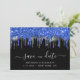 Elegant Blue Black Silver Glitter Drips Wedding Spara Datumet