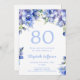 Elegant Blue Blommigt 80:e födelsedagsinbjudan Inbjudningar