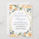 I denna utformning finns ytliga, vattenfärgade blommor i persikor och blå grått och botaniska accenter i en boho vattencolor stil inom ett guld dubbla geometriskt ram. Anpassa den här elegant blommigten bachelorette helg-färdinbjudan med ditt eget färg och typsnitt eller behålla för den här populära typografin som den är för din bekvämlighet. MIx och matcha med andra objekt i den här söt bröllop-samlingen.