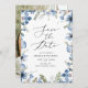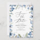 Elegant Blue Blommigt Bröllop Photo Save Date Inbjudningar