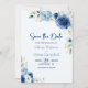 Elegant Blue Blommigt Bröllop spara datum Inbjudningar