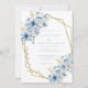 Gör ett enastående första intryck med den här Eleganten, blåa Blommigten Geometric Ram Bloom Bröllopsinbjudan. Med en sofistikerad blandning av dammiga blå och marinerade blommigtar är denna utformning perfekt utformad i ett modernt geometriskt guld gräns, som tillför lite elegans och romantik.