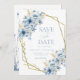 Elegant Blue Blommigt Geometric Ram Bloom Bröllop Spara Datumet