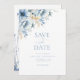 Meddela din speciella dag i stil med den här Eleganten, blåa Blommigten Geometric Ram Bloom Bröllop spara datum! Med en sofistikerad blandning av ömtåliga blå blommigtar och ett modernt geometriskt ram balanserar den här designen perfekt det tidslösa romantik med contemporaryns elegans.