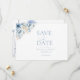 Meddela din speciella dag i stil med den här Eleganten, blåa Blommigten Geometric Ram Bloom Bröllop spara datum! Med en sofistikerad blandning av ömtåliga blå blommigtar och ett modernt geometriskt ram balanserar den här designen perfekt det tidslösa romantik med contemporaryns elegans.