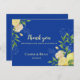 Elegant Blue Blommigt Lemon Bröllop - tackkort Vykort