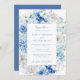 Den här bröllopsinbjudan innehåller en vattenfärgsfärgad blommigt ram med elegant blommor i varierande nyanser av blått och handskrivet skript. Med sin sofistikerade blomma ram och med uppmärksamhet på detaljer kommer denna inbjudan att ange tonen för ett minnesvärt och elegant bröllop.