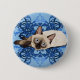 Elegant Blue Blommigt Siamese Cat Söt Kattdjur Knapp